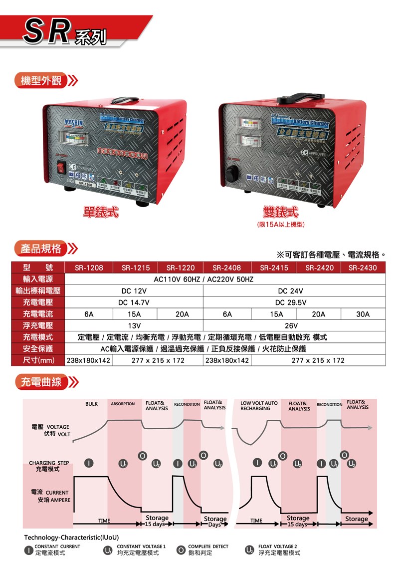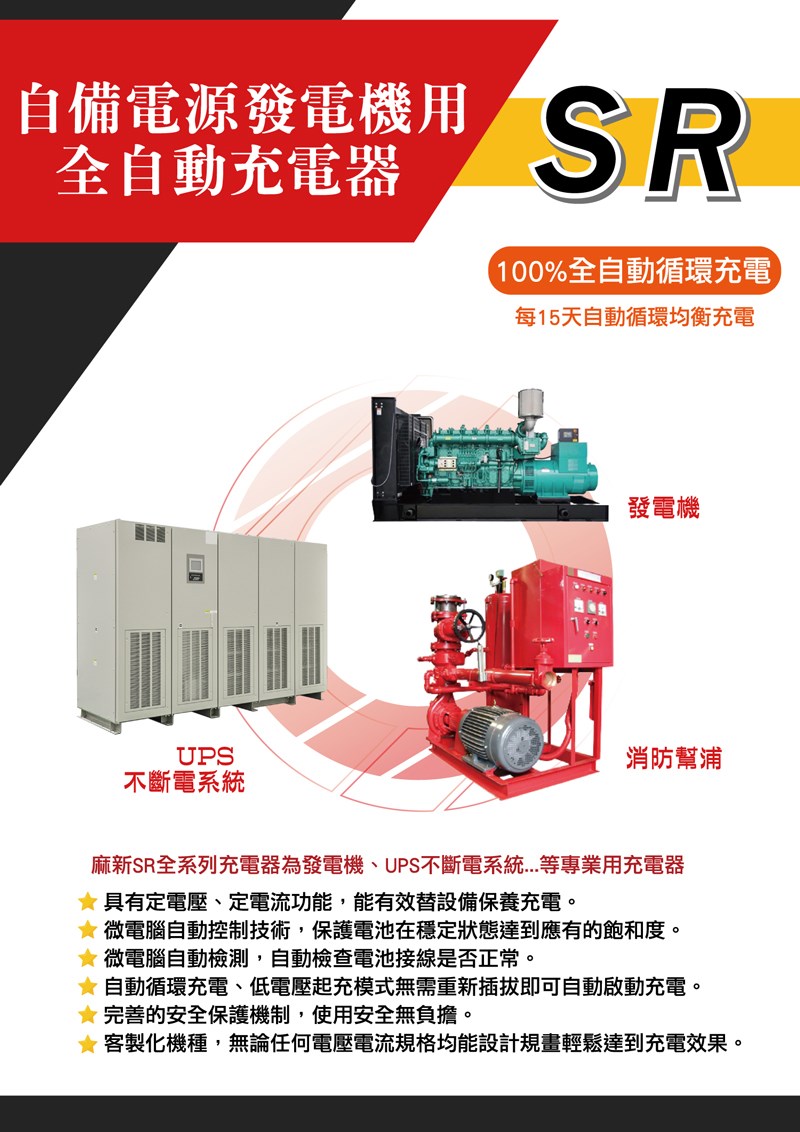 麻新 SR系列-12V/24V 6A自備電源發電機用全自動充電器