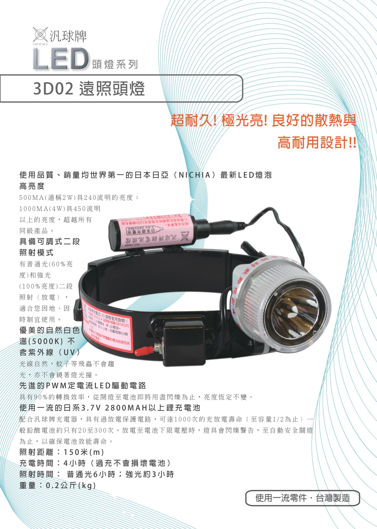 汎球行從事燈具的設計製作已有30年歷史,為提供專業燈具使用者持久耐用的照明設備,仍持續的研發出各種性能卓越的產品。使用品質、銷量均世界第一的日本日亞(NICHIA)最新LED燈泡,配備高品質的日系鋰電池,與日立(CSB)免保養電池,以及汎球行研發之原廠鋰電池充電適配器(ADAPTER)及LED燈具定電流驅動電路,耐用持久,有效保護電池及LED燈泡壽命。