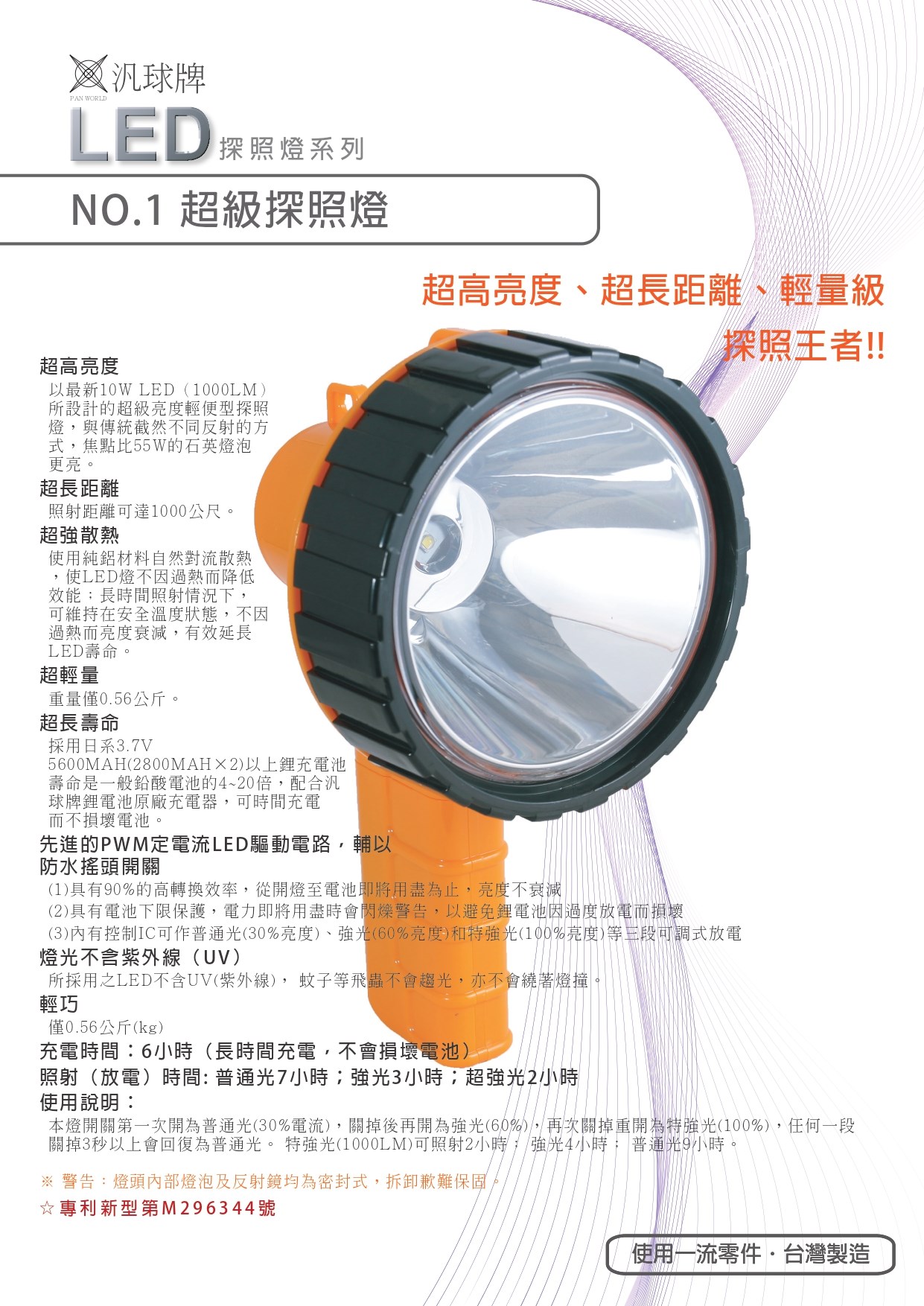 汎球行從事燈具的設計製作已有30年歷史,為提供專業燈具使用者持久耐用的照明設備,仍持續的研發出各種性能卓越的產品。使用品質、銷量均世界第一的日本日亞(NICHIA)最新LED燈泡,配備高品質的日系鋰電池,與日立(CSB)免保養電池,以及汎球行研發之原廠鋰電池充電適配器(ADAPTER)及LED燈具定電流驅動電路,耐用持久,有效保護電池及LED燈泡壽命。
