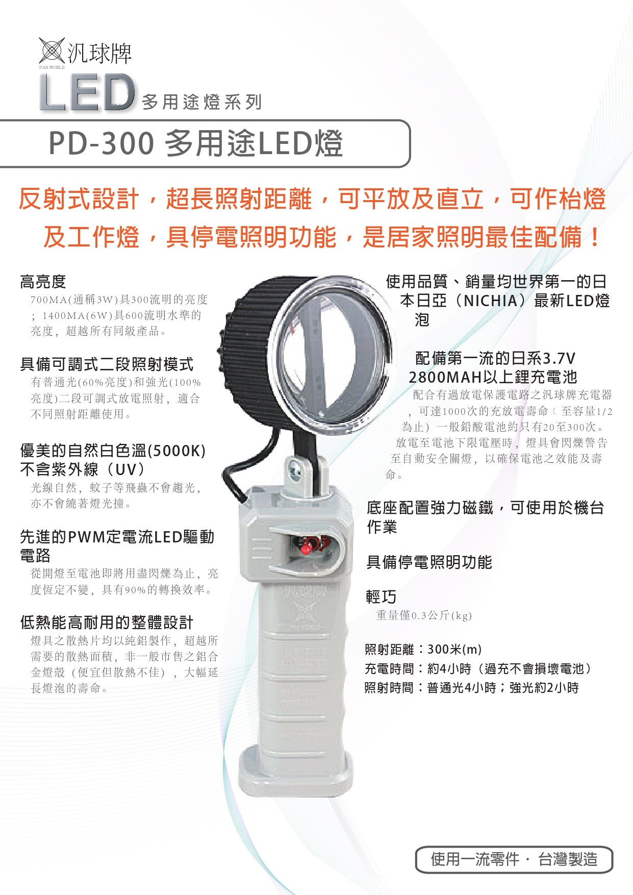 汎球行從事燈具的設計製作已有30年歷史,為提供專業燈具使用者持久耐用的照明設備,仍持續的研發出各種性能卓越的產品。使用品質、銷量均世界第一的日本日亞(NICHIA)最新LED燈泡,配備高品質的日系鋰電池,與日立(CSB)免保養電池,以及汎球行研發之原廠鋰電池充電適配器(ADAPTER)及LED燈具定電流驅動電路,耐用持久,有效保護電池及LED燈泡壽命。